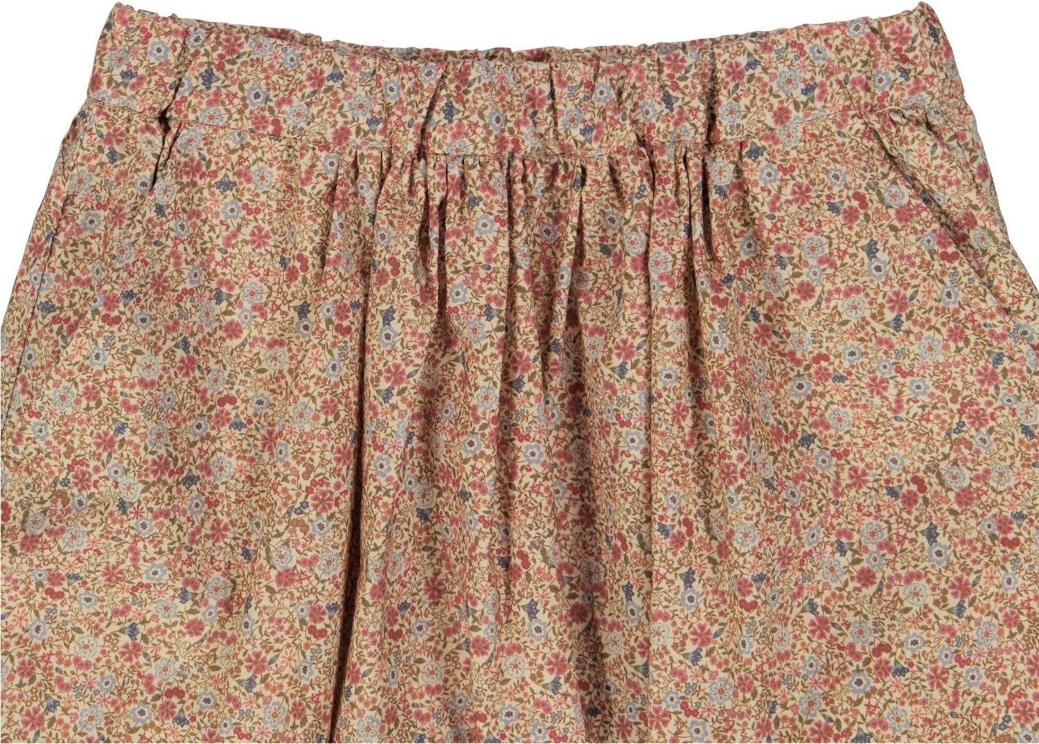 Vid nederdel i vævet bomuld i det fineste print. Nederdelen har rynkeeffekt i livet og lommer.